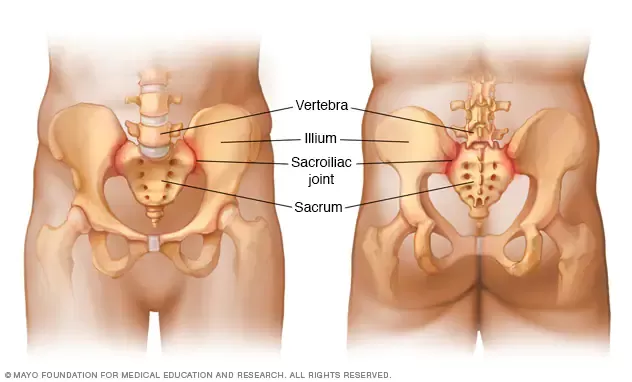 Its full name is the sacroiliac joint. There are two of them in your lower back, and they sit on each side of your spine. Their main job is to carry the weight of your upper body when you stand or walk and shift that load to your legs.